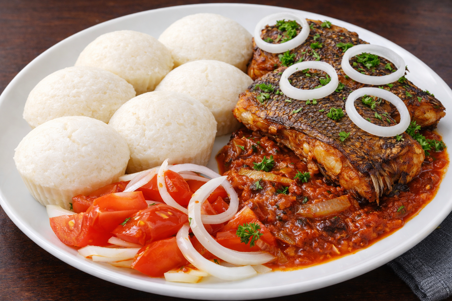 Un plat généreux qui évoque la cuisine africaine authentique, servie avec élégance.